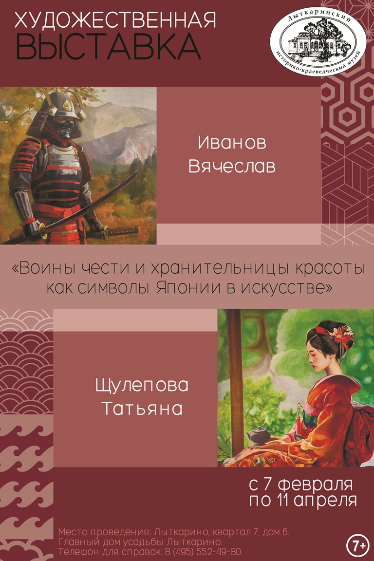 В Лыткаринском музее 7 февраля начинает свою работу художественная выставка «Воины чести и хранительницы красоты как символы Японии в искусстве». Экспозиция посвящена двум фундаментальным столпам японской культуры — суровой эстетике самурайского сословия и утонченному миру японской женщины, которые на протяжении веков формировали визуальный код Страны восходящего солнца. Это попытка заглянуть в сознание японца, где честь ценится выше жизни, а красота мимолетного мгновения приравнивается к вечности. Свои работы на выставку предоставили Татьяна Щулепова и Вячеслав Иванов — молодые, талантливые художники. Приглашаем всех желающих посетить выставку и погрузиться в эстетику страны, где сталь самурайского клинка встречается с шелком кимоно!