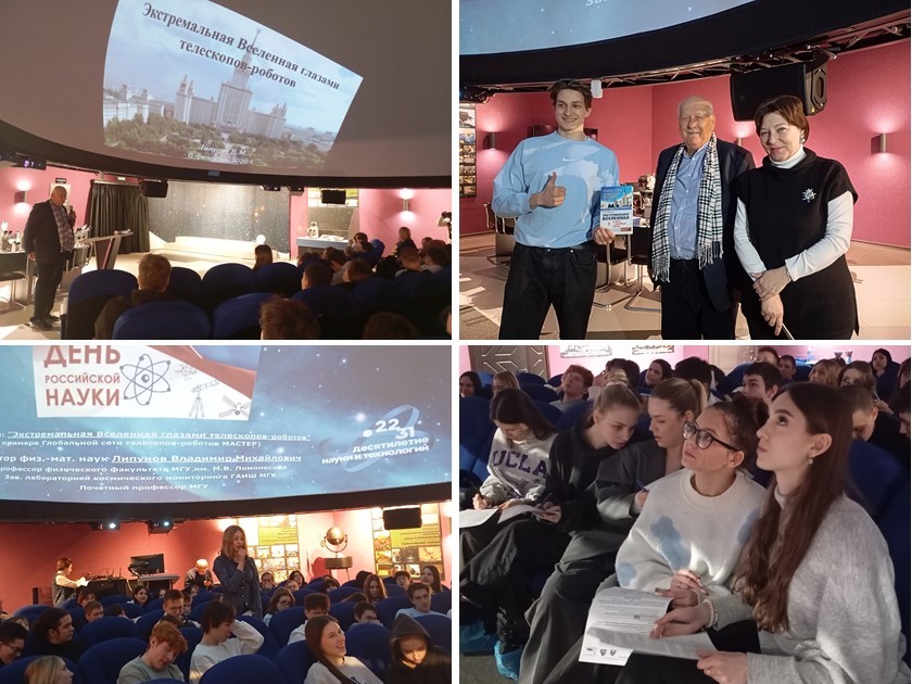 День Российской науки открыла научная лекция «Экстремальная Вселенная глазами телескопов-роботов» Владимира Липунова, доктора физико-математических наук, профессора МГУ имени М.В. Ломоносова и руководителя лаборатории космического мониторинга Государственного астрономического института им.П.К. Штернберга МГУ. Его выступление было посвящено достижениям Международной глобальной сети роботов-телескопов МАСТЕР, основателем и создателем которой он является. Отметим, что Лыткаринский завод оптического стекла принимает участие в реализации этого масштабного проекта. Во время лекции участники узнали о современных исследованиях Вселенной, наблюдениях черных дыр, нейтронных звезд и экзотических космических объектов. Если в прошлом веке мы только мечтали увидеть, как они появляются во Вселенной, то теперь мы наблюдаем рождение релятивистских объектов и явлений каждый день. И это стало возможным благодаря появлению в астрономии новых инструментов исследования — телескопов-роботов.