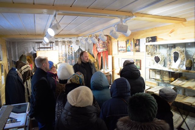 Музейная экспозиция познакомила участников поездки с историей нашей местности, древними картами, письменными источниками рассказывающим о местных жителях и их занятиях – каменных промыслах, ставших основой благосостояния тураевских крестьян. Отдельно была представлена история церковного раскола XVII века, главными персонажами которой были царь Алексей Михайлович, патриарх Никон, а также главный противник церковных реформ и идейный вдохновитель старообрядчества протопоп Аввакум. В экспозиции были представлены копии писем написанных протопопом Аввакумом царю, а также одно из первых старообрядческих изданий выдающегося памятника русской средневековой литературы – «Житие протопопа Аввакума». О сложных условиях выживания в условиях гонений поведали фискальные документы XIX века.