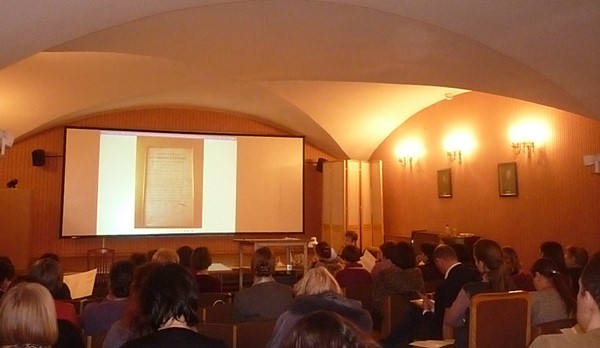 В ходе работы конференции были представлены многие интересные и познавательные доклады сотрудников различных музеев и библиотек, рассказывающих о книжных собраниях, коронационных альбомах, рукописных и других материалах семьи Романовых, находящихся в их фондах. Особенно запомнились выступления: И.П. Тикуновой «Старопечатные издания в библиотеках семьи Романовых» (Российская государственная библиотека, Москва), Е.В. Исаевой «Коронационные альбомы XVIII-XIX веков в собрании Оружейной палаты» (Музеи Московского Кремля), Е.В. Герасимовой «Библиотека Екатерины Великой – возвращение из небытия. 1762-2012» (Российский государственный педагогический университет имени А.И. Герцена, Санкт-Петербург), Д. Ребеккини «Библиотека Александра II: история формирования» (Миланский университет).