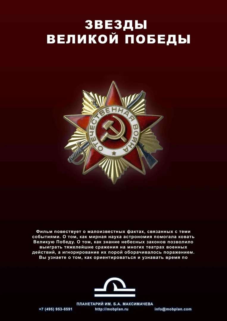 Фильм повествует о малоизвестных фактах, связанных с Великой Отечественной войной. О том, как мирная наука астрономия помогала ковать Великую Победу. Как знание небесных законов позволило выиграть тяжелейшие сражения на многих театрах военных действий, а игнорирование их порой оборачивалось поражением. Ребята узнают, как бойцы ориентировались и узнавали время по Солнцу и Луне, как лунные приливы и отливы помогали успеху боевых операций и многое другое.