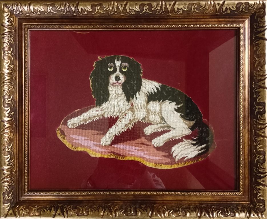 29. Вышивка бисером «Спаниель». Середина XIX в. Бисер, бумага, нитки.