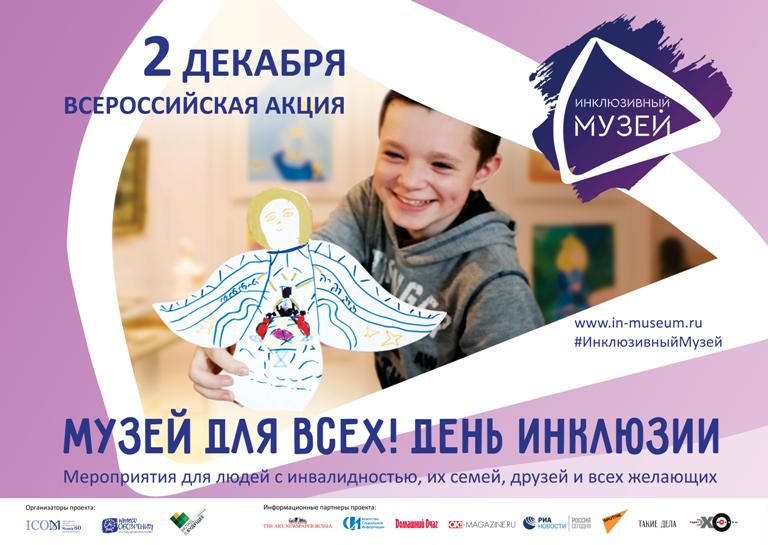 2 декабря 2017 года в российских музеях будет проводиться акция «Музей для всех. День инклюзии», цель которой – сделать музеи доступными для людей с инвалидностью. Целевой аудиторией проекта в этом году станут дети.
