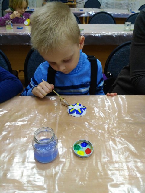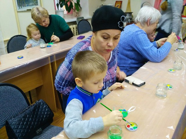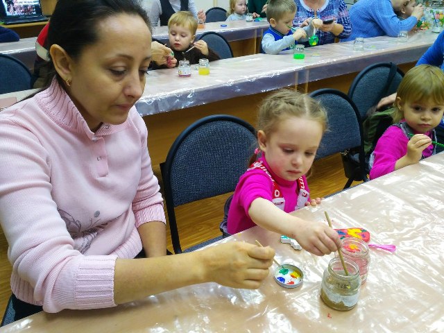 Дети с родителями с интересом наблюдали, как обычные гипсовые фигурки превращаются в неповторимые и уникальные, сделанные своими руками новогодние украшения!