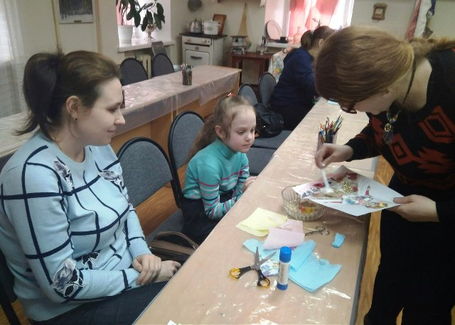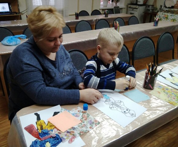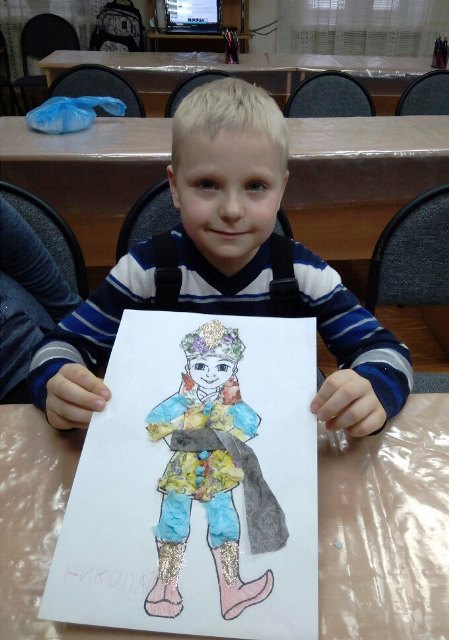 Любое рукоделие способствует развитию ребенка, улучшает его координацию и моторику. Так, дети вместе со взрослыми сами смогли изготовить и смоделировать элементы русской народной праздничной одежды из цветных салфеток и бумаги. Все работы получились очень яркими и объемными, чем порадовали своих маленьких владельцев.