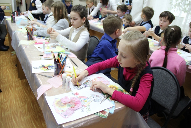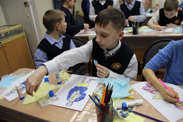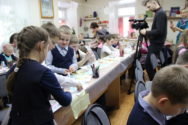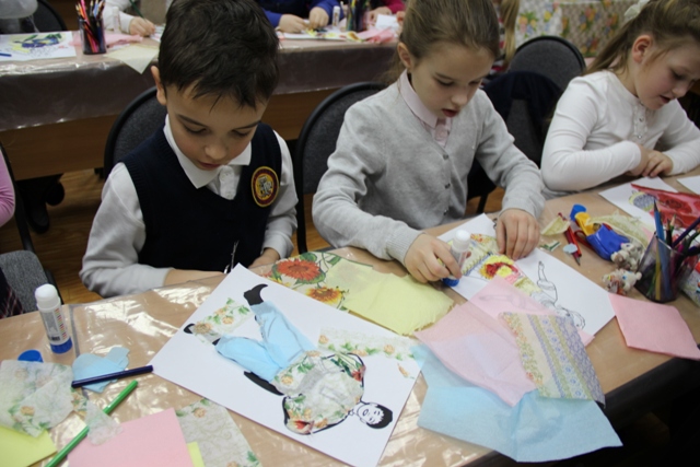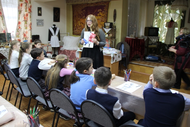 Открытие выставки проходило на Масленичной неделе, и после проведения экскурсионной части программы ребят ждал увлекательный мастер-класс по моделированию объемного русского праздничного костюма.