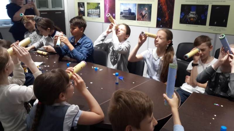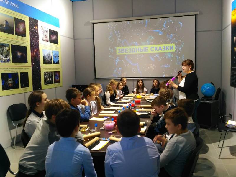 В детской обсерватории для ребят был разыгран спектакль Оптического театра «Звездные сказки» о созвездиях северного полушария, носящих имена героев древнегреческих мифов. Дети познакомились с понятиями «созвездие», «звездная величина», «полюс мира» и другими астрономическими терминами. Они отгадывали космические загадки, своими руками мастерили подарок в виде оптической игрушки «Волшебный калейдоскоп». Калейдоскоп, изобретенный более 200 лет назад, до сих пор остается любимой игрушкой детворы. Создание калейдоскопа — это не только увлекательная забава, но и научное развлечение, знакомящее детей с законами распространения света и свойствами зеркальных поверхностей. В интерактивной лаборатории «Путешествие света в оптических лабиринтах» и «Королевстве кривых зеркал»  ребята провели много занимательных опытов и экспериментов, самостоятельно объясняя некоторые оптические парадоксы. Время пролетело быстро и незаметно, как впрочем, наверное, и  первые четыре года школьной жизни с первой учительницей!