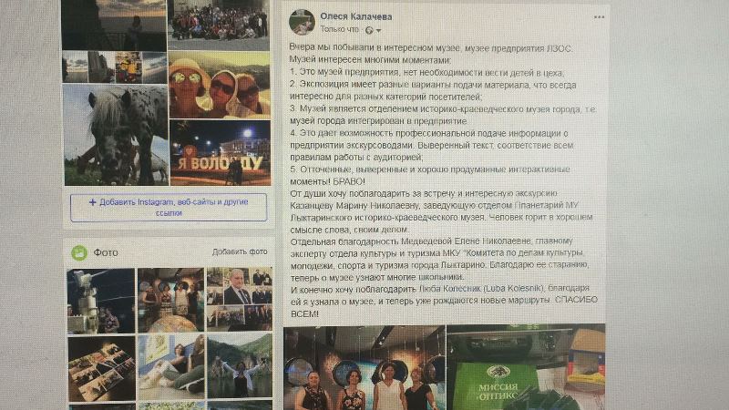 Представители турбизнеса и ТИЦ «ПОДМОСКОВЬЕ» с визитом в Интерактивный оптический центр «Лыткарино»