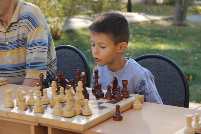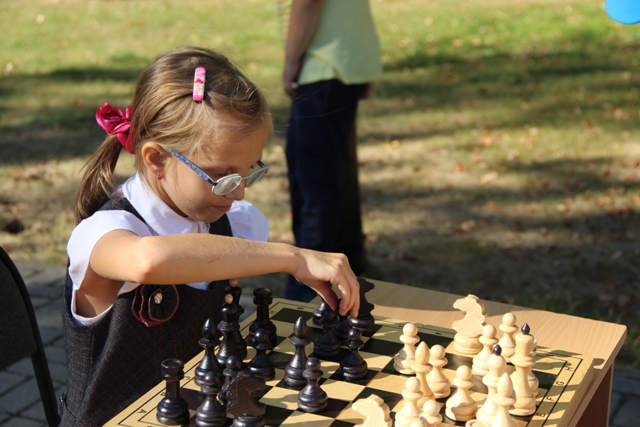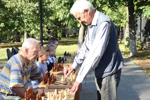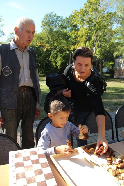 С утра еще слегка попугал дождик, но к обеду тучи развеялись, и вышло ласковое осеннее солнышко. С приветственным словом выступил наставник перед любителями шахмат и их болельщиками, которые пришли поддержать своих представителей. И игра началась…