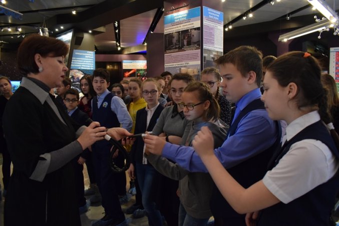 В.П. Усачева: — Мы работаем в тесном контакте с родительским комитетом, я только определяю цели и задачи. В прошлом году дети увлеченно занимались робототехникой. Сейчас наши дети подрастают, нам нужна уже серьезная профориентация. Мы будем посещать высшие учебные заведения, лаборатории при ВУЗах, знаем, что на АО ЛЗОС работает базовая кафедра, которая готовит специалистов для завода. Один из родителей нашел в интернете страницу об оптическом центре на сайте музея, затем почитали статьи и отзывы. Мы связались с Лыткаринским историко-краеведческим музеем, все выяснили и оперативно решили все организационные вопросы, все получилось замечательно.