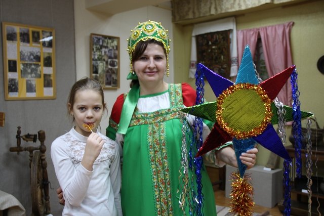 Заканчивалась рождественская ночь, начинался основной праздник Рождества Христова – время традиционного отдыха, веселых развлечений, народных гуляний, когда можно играть, колядовать, поздравлять и получать подарки. На празднике в музее, конечно же, были соблюдены все традиции: активно играли; взяв Вифлеемскую звезду, колядовали, распевая щедровки и, в заключение, получили угощение от хлебосольной хозяюшки.