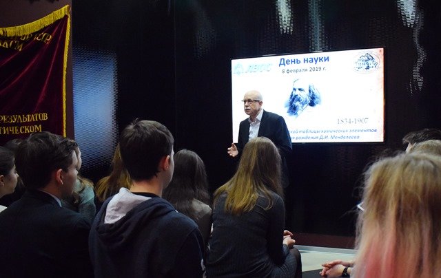 Д.И. Менделеев — гордость русской и мировой науки! 2019 год объявлен ООН Международным годом Периодической таблицы химических элементов Д.И. Менделеева. Этот факт имеет важное значение для нашей страны, поскольку именно русский ученый 150 лет тому назад сделал это открытие. Закон и система Менделеева принадлежат к числу важнейших обобщений естествознания и лежат в основе современного учения о строении вещества. 8 февраля, в день 185-летия Д.И. Менделеева, Лыткаринский историко-краеведческий музей и АО ЛЗОС провели совместное мероприятие «День российской науки». Его участниками стали старшеклассники из среднеобразовательных учреждений города Лыткарино, проявляющие интерес к изучению химии и участники предметных олимпиад. Мероприятие было проведено в рамках сотрудничества Лыткаринского музея и АО ЛЗОС по работе с молодежью и направлено на профориентацию школьников.