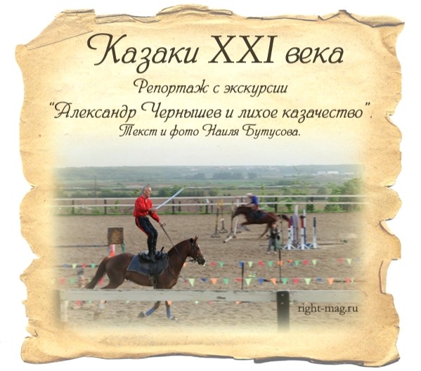 Перед нами выступали Евгений Савинов, Андрей Бакаушин, Олег Кудряшов и очаровательная девушка Александра Коровкина. Ребята показали те приемы, которые использовали военные казаки времен Александра Чернышева. Они продемонстрировали владение оружием – саблей, пистолетом, ножом – и все это на высокой скорости верхом на конях!
