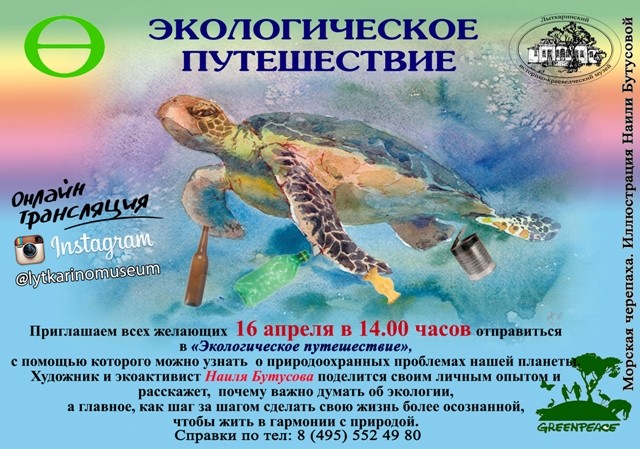 Приглашаем всех желающих 16 апреля в 14.00 отправиться в «Экологическое путешествие», с помощью которого можно узнать  о природоохранных проблемах нашей планеты. Художник и экоактивист Наиля Бутусова поделится своим личным опытом и расскажет, почему важно думать об экологии, а главное, как шаг за шагом сделать свою жизнь более осознанной, чтобы жить в гармонии с природой.
