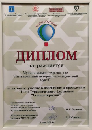 11 мая Лыткаринский историко-краеведческий музей принял участие в музейно-туристическом фестивале «Сезон открытий» в г. Раменское. На одной площадке собрались мастера народных промыслов России и представители организаций туристской сферы юго-востока Подмосковья. Праздник прошел под общим девизом «Открой свое Подмосковье» и объединил на одной площадке сразу два события — V фестиваль народного творчества » Мастерство и ремесло Раменья» и II туристический фестиваль «Сезон открытий».