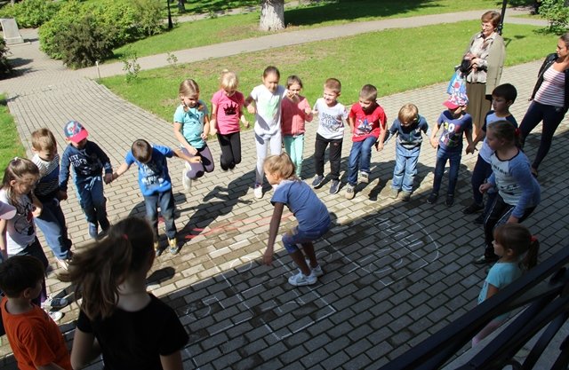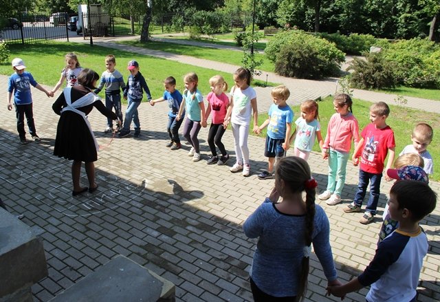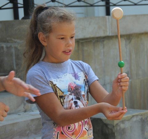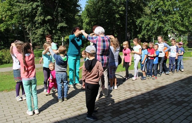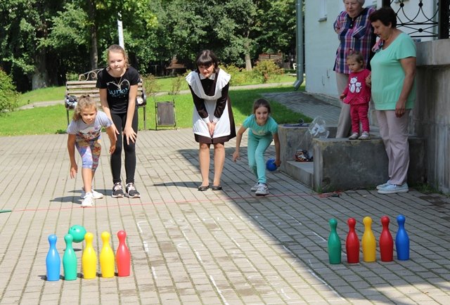 Юные посетители музейного парка с удовольствием скакали через резинку, прыгали в «Классики». Считается, что игра «Классики» появилась в европейских странах еще в Средние века, а возможно, ее корни идут еще от древнеримских развлечений. Ребята поиграли в кегли и «Колечко-колечко, выйди на крылечко!», в игру «Малечина-калечина» в которой пришлось изрядно посостязаться, чтобы не уронить палочку. Вспомнили такие игры как «Жмурки» и «Скакалка». С огромным удовольствием сыграли в игру «Золотые ворота», где главной задачей было поймать в ворота как можно больше детей. Даже бабушки с удовольствием вспомнили детство и приняли активное участие в играх.