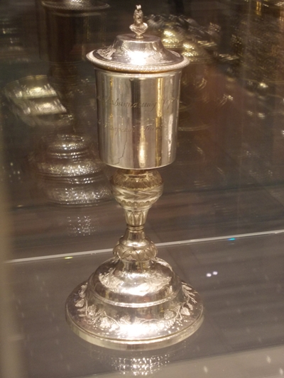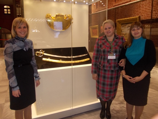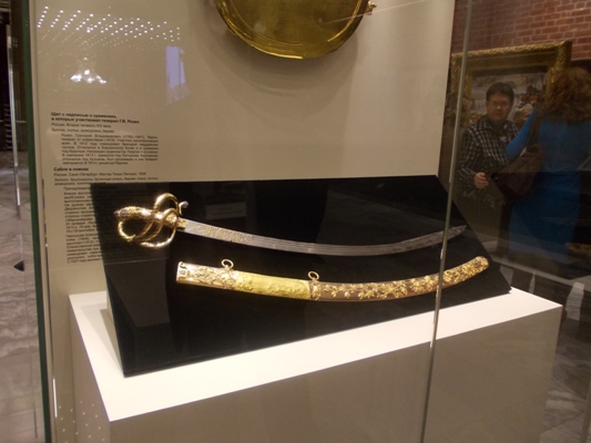Любителям истории также интересно будет увидеть личные вещи А.И.Чернышева: серебряный кубок с крышкой, подаренный ему Изюмским полком в память о войне и именное оружие – саблю, преподнесенную дворянством Войска Донского. Сабля Чернышева – настоящее произведение искусства. Эфес и ножны изготовлены из золота, украшенного чеканкой и бриллиантами.