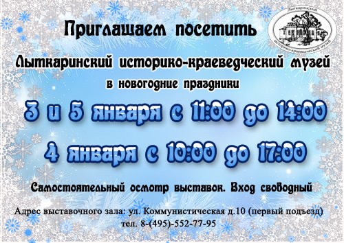 Приглашаем посетить Лыткаринский историко-краеведческий музей в новогодние праздники. Самостоятельный осмотр выставок. Вход свободный!