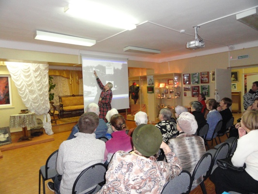 Затем сотрудники музея рассказали гостям о своей работе, проведенной в 2012 году. Хранитель фондов музея Л.М. Пахомова познакомила гостей с новой выставкой «Наш край в годы Отечественной войны 1812 года». О подготовке и участии Лыткаринского музея в юбилейных мероприятиях, посвященных 200-летию Победы в Отечественной войне 1812 года, лыткаринцы узнали из видеоролика «Приоткрывая дверь в мир музейных исследований», снятый молодежным интернет-телевидением «Новое поколение». Просмотр старых фотографий из музейных фондов вызвал у многих неподдельный интерес и удивление. Не все собравшиеся могли узнать, где находилось то или иное здание раньше, и кто изображен на фотографиях. Общими усилиями удалось восстановить достоверную информацию, которая в дальнейшем будет использована в работе музея.