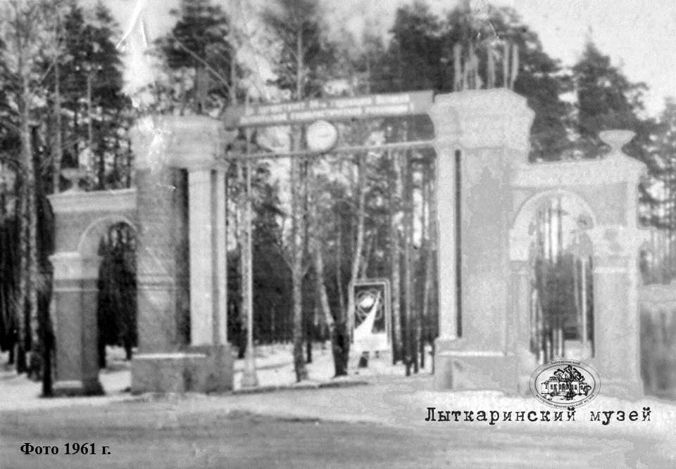 Красные ворота – частичка истории города Лыткарино. Их установили лесорубы первой просеки из двух деревянных столбов, окрашенных революционным ярко-красным цветом. На древках гордо реяли два красных флага. В 1937 или 1938 годах Красные ворота были перенесены с первой просеки на третью – их теперешнее место. В разные годы к ним пристраивали то автобусную остановку, то магазин. По-разному решалось архитектурно-художественное оформление ворот, но их цвет оставался неизменным. Они и сегодня служат главным ориентиром, указывающим дорогу к Лыткаринскому заводу оптического стекла.