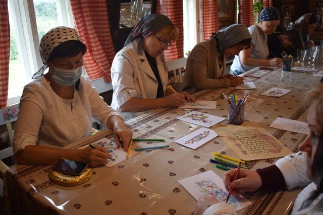 В продолжение программы все гости отправились на мастер-класс «Буквица», где почувствовали себя настоящими художниками, создав оригинальные открытки с узорами в стиле традиционного гуслицкого книжного орнамента. Завершением экскурсии стало чаепитие с вкусными домашними пирогами под рассказ о традициях русского чаепития и разгадыванием старинных загадок.