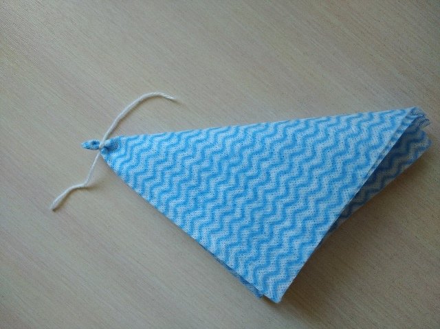 1. Берем квадратный кусок ткани и складываем его по диагонали.
