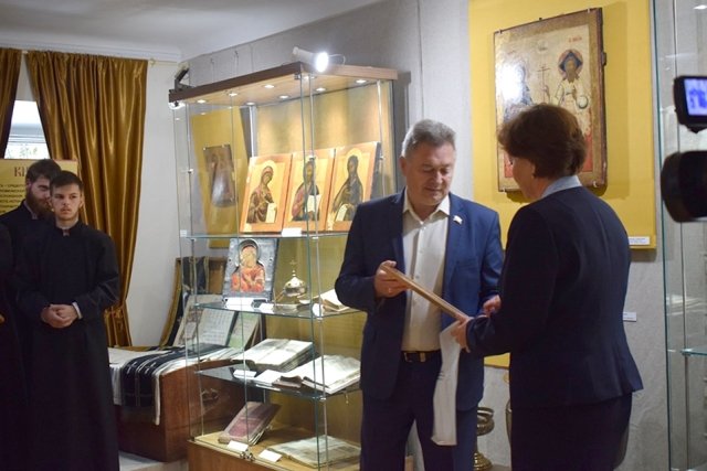 Посетивший мероприятие настоятель храма Рождества Пресвятой Богородицы в с. Верхнее Мячково иерей Иоанн Шередекин, приветсвуя гостей, сказал: «Мероприятие очень важное. Важное потом,у что конечно же нас разделяет раскол. Раскол всегда это рана, которая на протяжении многих веков, почти 400 лет уже, никак не уврачевывается.  Но все равно она затянулась и сегодня мы живем в мирное время когда у нас есть возможность вместе, пока не совершать богослужения, к сожалению, но, по крайней мере, вместе прославлять нашу историю за которую мы должны благодарить Господа. Потому что действительно сейчас смотришь на все эти экспонаты, это живые экспонаты. Так как у нас в Мячково тоже был не закрывавшийся храм и у нас множество таких же похожих, действительно может быть будущих экспонатов музеев. И действительно это очень важно, особенно в 21 веке, когда мы пытаемся постоянно что то привнести новое, постоянно что то хотим побыстрее, поудобнее. А вот старообрядчество действительно нам помогает неможко остановиться, задуматься, посмотреть на ту эпоху, и посмотреть, как бережно сохраняется все это теми людьми, которые остаются преданы своей истории и культуре. Очень радостно то, что мы сегодня вместе собрались и надеюсь, что эта выставка многое нам откроет  о том тяжелом непростом  времени и каждому из нас поможет еще больше любить ту историю нашего отечества, которой мы тоже являемся сегодня участниками».
