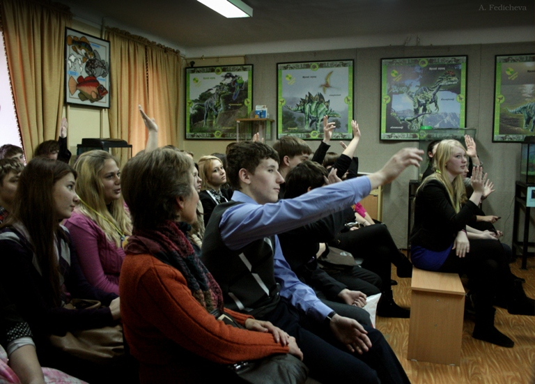 В музее состоялось мероприятие, завершающее Год Арктики-2012 и открывающее Год защиты окружающей среды-2013. На этот раз гостями музея стали студенты Московского областного колледжа технологий, экономики и предпринимательства. Молодежи принадлежит будущее нашей планеты, именно им предстоит в ближайшие десятилетия развивать экономику страны, воспитывать детей и решать встающие перед человечеством экологические проблемы. Поэтому очень важно воспитать в них бережное и ответственное отношение к живой природе и окружающему их миру.