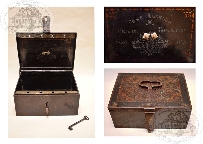 Металлическая шкатулка-короб 1886 года была изготовлена в городе Лысково Нижегородской области России, расположенном на правом берегу реки Волга. В летописях селение упоминается с 1410 года, но существовало еще с XII века (вероятно, как булгарская крепость Сундовит на берегу реки Сундовик). С 1641 года в Лысково стали бурно развиваться ремесла и торговля. Здесь работали заведения по обработке дерева, кожи, тканей, гончарные мастерские. В селе жили талантливые умельцы – ремесленники, продукция которых на Макарьевской ярмарке в течение  нескольких веков пользовалась большим спросом. Это и шкатулки, и замки, и изделия из меди, серебра, золота.