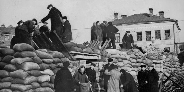 На улицах и въездах в Москву были сооружены баррикады. Сотни тысяч жителей столицы участвовали в строительстве укреплений.