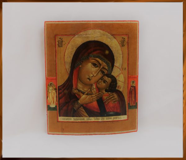 Иконография Богородицы Днепрской является вариацией иконографии Корсунской Богоматери. Иконографическая разновидность типа «Умиление» имеет византийское происхождение. Само название первообраза «Корсунская» содержит в себе легенду о происхождении образа, город Корсунь или Херсон в византийском варианте. С Корсунью связано выдающееся событие в истории России, где произошло крещение князя Владимира, которое понимали как начало крещения всей Руси. Неудивительно, что образ «Днепрской» Богоматери получил широкое почитание в старообрядчестве, оспаривавшем преемственность у синодальной церкви. Нередко образ дается в зеркальном отображении, как в случае с тураевской иконой. Датировка начала XIX века не случайна. Более поздние списки Днепрской иконы уже не имеют тех признаков, на которые указывает В.М. Сорокатый: своеобразного перстосложения и характерной проработки одежд. Списки чудотворных икон Богоматери «Днепрская» были известны в старообрядческих скитах Керженца и Иргиза, разоренных в царствование Николая I, затем следы их теряются. Однако иконография не была забыта и, уже оторванная от подлинников, продолжила свою жизнь в Гуслице, где «Днепрскую» часто заказывали.