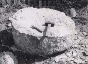 Обрабатывали выломанный камень различного вида и размера «болдами» (т.е. молотками), отбивая сперва большие, затем все меньшие куски. Размечали камень углем с помощью разметки – линейки с отверстиями, вращающейся вокруг воткнутого в центральную ячею жернова штыря. Размечал или сам хозяин, или его мастер.