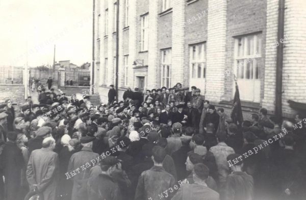 Митинг, посвященный сдаче Госкомиссии школы №37 в эксплуатацию. Фото 30 августа 1952 г.