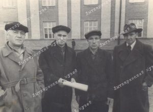 Участники строительства школы №37 (слева-направо): Кузнецов И.С., Матвеев А.М., Гаврилов И.А., Чижов А.К. (СМУ-2)