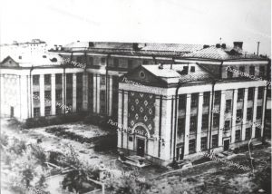 С 1 марта 1952 года часть тепляка была открыта и началась кирпичная кладка стен цоколя и 1-го этажа. Одновременно были размещены все заказы на столярные изделия, перекрытия, крышу, оборудование классов и кабинетов. Уже в апреле на открытом воздухе начали изготовление всех конструкций крыши (сборных деревянных ферм). После перекрытия 1-го этажа, в подвальных помещениях были начаты штукатурные работы, монтаж сантехоборудования, устройство полов и другие работы.