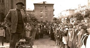 Участник войны, 80-летний Павел Иванович Суханов, потерявший на фронте двоих сыновей, возложил к подножию цветы и сказал проникновенную речь. Оба его сына — Лев и Константин Сухановы, выпускники Лыткаринской средней школы, не вернулись с фронта. Лев Суханов, выпускник 1940 года, был пограничником, погиб в самом начале войны. Константин Суханов, выпускник 1941 года, был командиром танка, погиб в августе 1943 года. Сам Павел Иванович всю жизнь работал на Лыткаринском заводе оптического стекла,