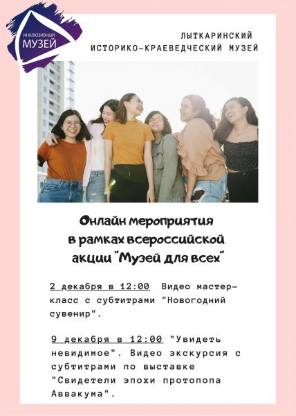 Третья Всероссийская инклюзивная акция «Музей для всех!» – 2020», основная цель которой — привлечь внимание общества к значимости равноправного участия всех людей в культурной жизни, состоится с 1 по 13 декабря 2020 года.