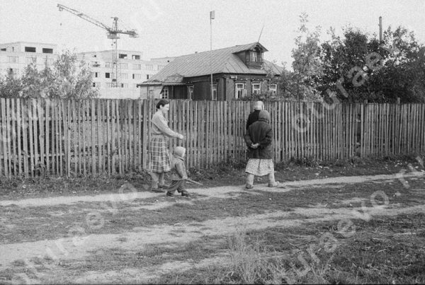 К моменту сноса деревня представляла собой селение с вытянутыми в три ряда 69-ю бревенчатыми избами, с садами и огородами. Дома в деревне были в хорошем состоянии, сказывалось прошлое деревни, жители которой занимались добычей камня, что приносило хороший доход. Дома были еще с XIX века крыты железом, на окнах ставни. Домохозяйство состояло, как правило, из избы, горенки, сеней, большого двора, сарая, погреба (выложенного из белого камня). Имелись домохозяйства с 2-мя и 3-мя избами. Хотя дома были деревянными, но завалинки и подборы выкладывались из обломков камня.