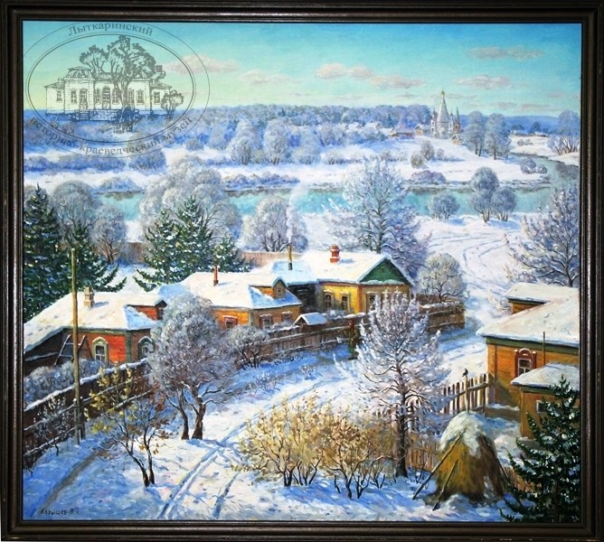 Как нельзя лучше зимнее настроение передает картина «Зима в Петровском», написанная лыткаринским художником Виктором Николаевичем Корышевым в 2010 году и в настоящее время украшающая стену музея. Заходишь в коридор офисной части, и сразу глаза останавливаются на большом зимнем пейзаже. Видны несколько деревенских домиков, дорога, на заднем плане – Москва-река и Преображенская церковь в селе Остров…