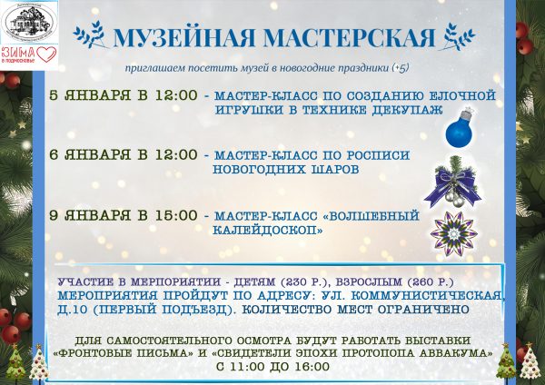 Для самостоятельного осмотра с 11:00 до 16:00 будут работать выставки «Фронтовые письма» и «Свидетели эпохи протопопа Аввакума».