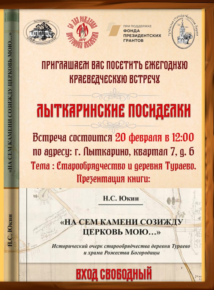 В этом году на традиционных краеведческих встречах прозвучит немало интересного и познавательного из истории деревни Тураево и местной старообрядческой общины. Впервые жителям города Лыткарино будет показан фильм, посвященный возрождению колокольного звона в церкви Рождества Пресвятой Богородицы в Тураево. Вы узнаете много ранее неизвестной исторической информации о местности, населенной ранее старообрядцами.