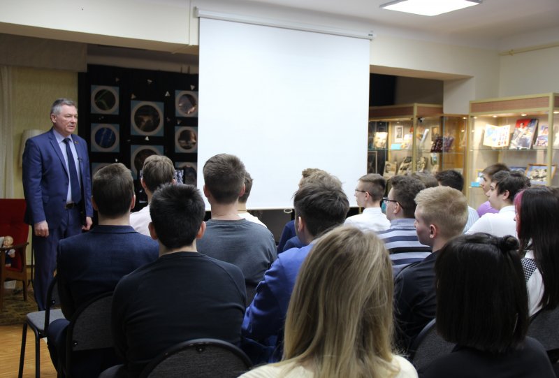 Почетный гость — заместитель Председателя Совета депутатов г.о. Лыткарино — Ю.Н. Егоров рассказал ребятам о значении для человечества освоения космического пространства, о достижениях нашей страны в этой области и личном героизме первого покорителя космоса. Директор Лыткаринского историко-краеведческого музея Н.В. Голубева познакомила школьников с деятельностью лыткаринских предприятий, внесших свой вклад в создание ракетно-космической техники. Десятиклассники со своей стороны подготовили к празднику поэтическую композицию «Наш Гагарин». Далее заведующая отделом «Планетарий» М.Н. Казанцева провела экскурсию по выставке, обратив внимание ребят на наиболее интересные экспонаты.