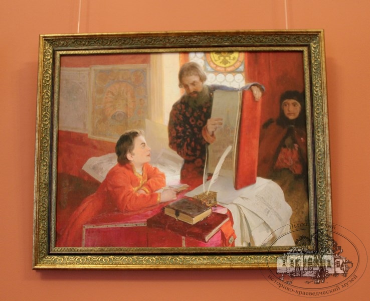 Недавно Лыткаринский музей вошел в избранное число Ассамблеи петровских музеев России. К следующему году планируется доработать и ввести в действие экспозицию о сподвижнике Петра I Н.М. Зотове и его потомках. А пока хотелось рассказать об одной известной картине «Дьяк Зотов обучает царевича Петра Алексеевича грамоте», копия которой будет представлена в этом зале.