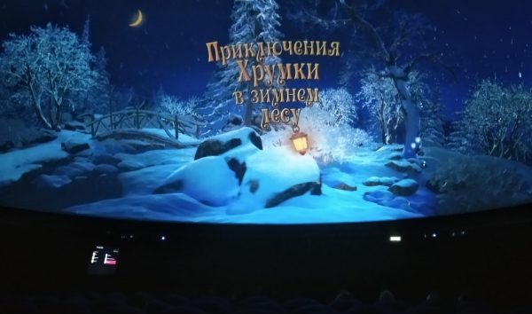 Космическая сказка «Приключения Хрумки в зимнем лесу» перенесла ребят в сказочный лес, где пушистые хлопья снега укрывают деревья, а над ними в ночной тишине зажигаются яркие звёзды. Разбуженный лунным лучиком  Хрумка отправляется к своему другу, чтобы вместе с ним узнать о чудесных явлениях, которые он увидел на небе. Они встречаются со сказочными существами и на санях-скороходах мчатся по волшебному ночному лесу до Скалистой горы, где стоит обсерватория Гном-астронома. Там друзья узнают, почему бывают полярные сияния, откуда прилетают астероиды и какие  созвездия видны на зимнем небе.