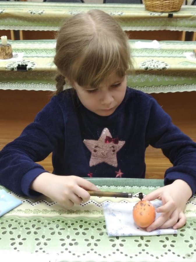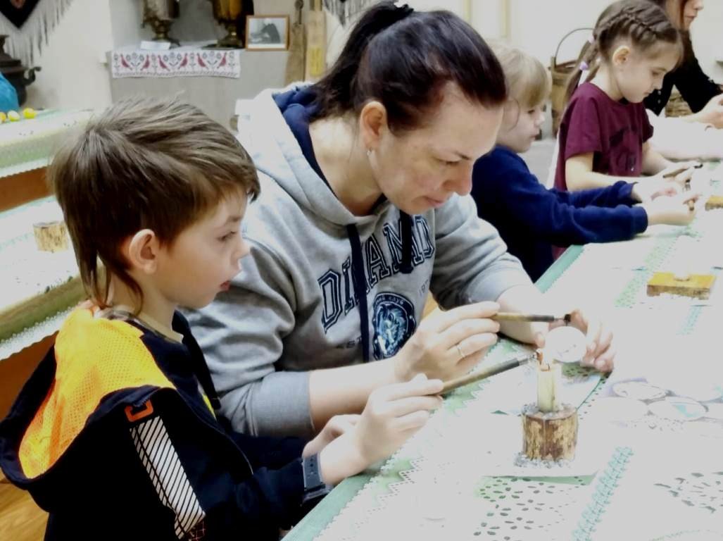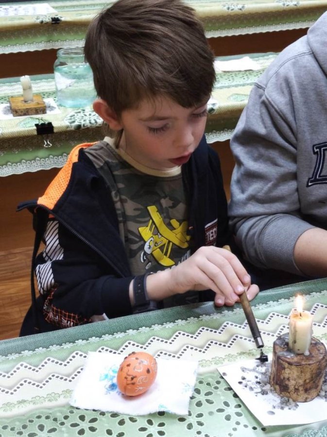 Существует множество различных техник окрашивания яиц. Посетители  освоили технику писанкарства и расписали яйцо при помощи воска.