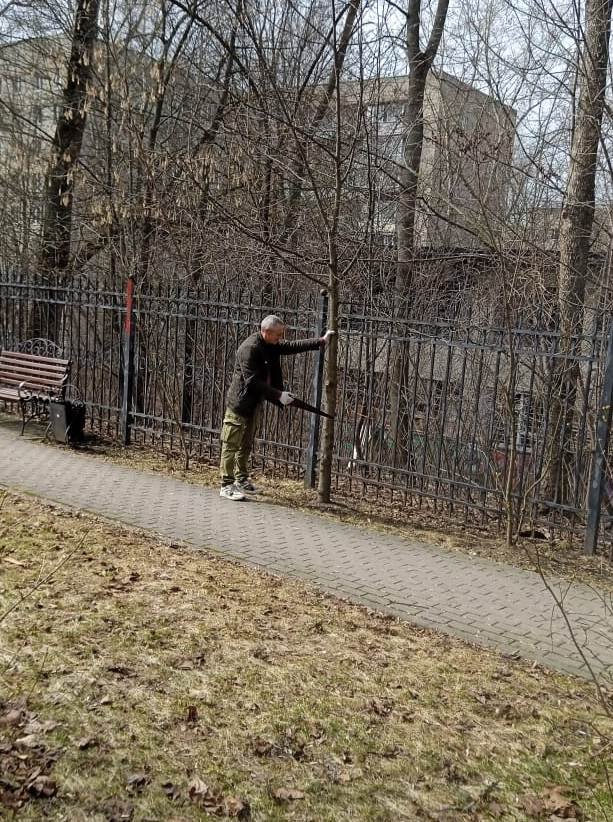 Были обрезаны цветущие кустарники, молодые липы, подготовлен к летнему сезону газон, внесены необходимые растениям удобрения.