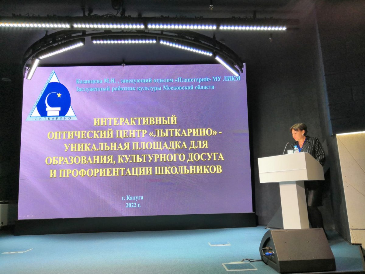 АПР совместно с Международной общественной организацией «Астрономическое общество» являются организатором ежегодной Международной конференции «Школа лекторов планетариев», которая в этом году проходила в Калуге. Школа лекторов планетариев — самая известная и представительная площадка для профессионального сообщества. Заведующая отделом «Планетарий» Лыткаринского историко-краеведческого музея, заслуженный работник культуры Московской области М.Н. Казанцева по приглашению организаторов форума представила доклад «Интерактивный оптический центр «Лыткарино» — уникальная площадка для образования, культурного досуга и профориентации школьников». Доклад вызвал интерес участников конференции, было задано много вопросов по практической части реализации проекта, об организации экскурсионной деятельности и порядке обслуживания центра. Работа Лыткаринского планетария получила положительную оценку коллег.