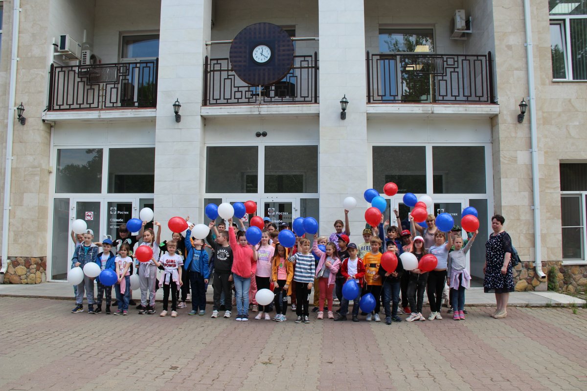 Закончилось мероприятие увлекательным флешмобом «Счастливые дети России». Ребятам рассказали о достижениях нашей страны в освоении космоса — первом в мире искусственном спутнике Земли, юбилейная дата запуска которого будет отмечаться 4 октября 2022 года, первом в мире космонавте планеты Юрии Гагарине, первом в мире выходе в открытый космос Алексея Леонова, о первой в мире женщине-космонавте, о первой орбитальной станции «Салют», о работе Международной космической станции и предстоящем запуске ракеты-носителя «Донбасс» с грузовым кораблем «Прогресс МС-20″. Под речовку «Флаг у нас прекрасный — белый, синий, красный» ребята изобразили стилизованный флаг России.