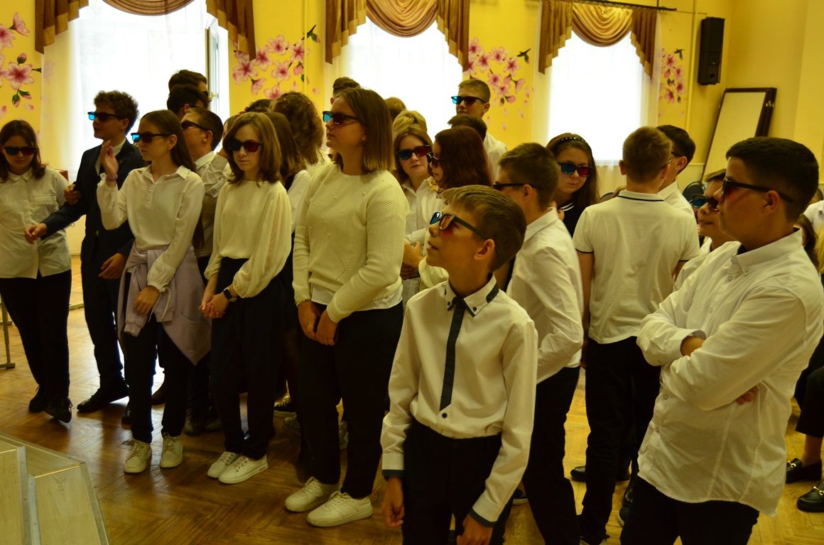 Учащимся презентовали новый проект «Путешествие школьников в мир оптики и звезд», поддержанный Президентским фондом культурных инициатив. Ребятам рассказали об активностях, которые ожидают их в Лыткаринском планетарии – основной площадке реализации грантового проекта. Во время проводимого мероприятия школьникам предложили поучаствовать в опыте с анаглифическими очками и стереоизображениями микрообразцов, чтобы продемонстрировать, какие интересные эксперименты их ожидают во время экскурсий по гранту.