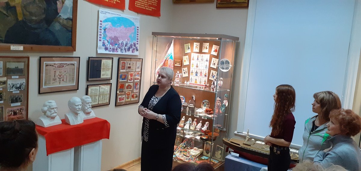 В ходе экскурсии по новой выставке, которую провела директор музея Надежда Васильевна Голубева, гости смогли увидеть фотографии горожан и картины лыткаринских художников советского времени, бюсты вождей социалистического государства, символы молодежных организаций – пионерии, комсомола, коллекции открыток, марок, значков, посуду, предметы быта и даже услышать самые популярные мелодии советского времени.